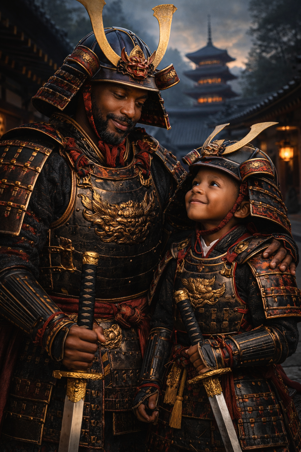 Armures détaillées, ambiance cinématographique et regard puissant : votre famille devient un véritable clan légendaire.